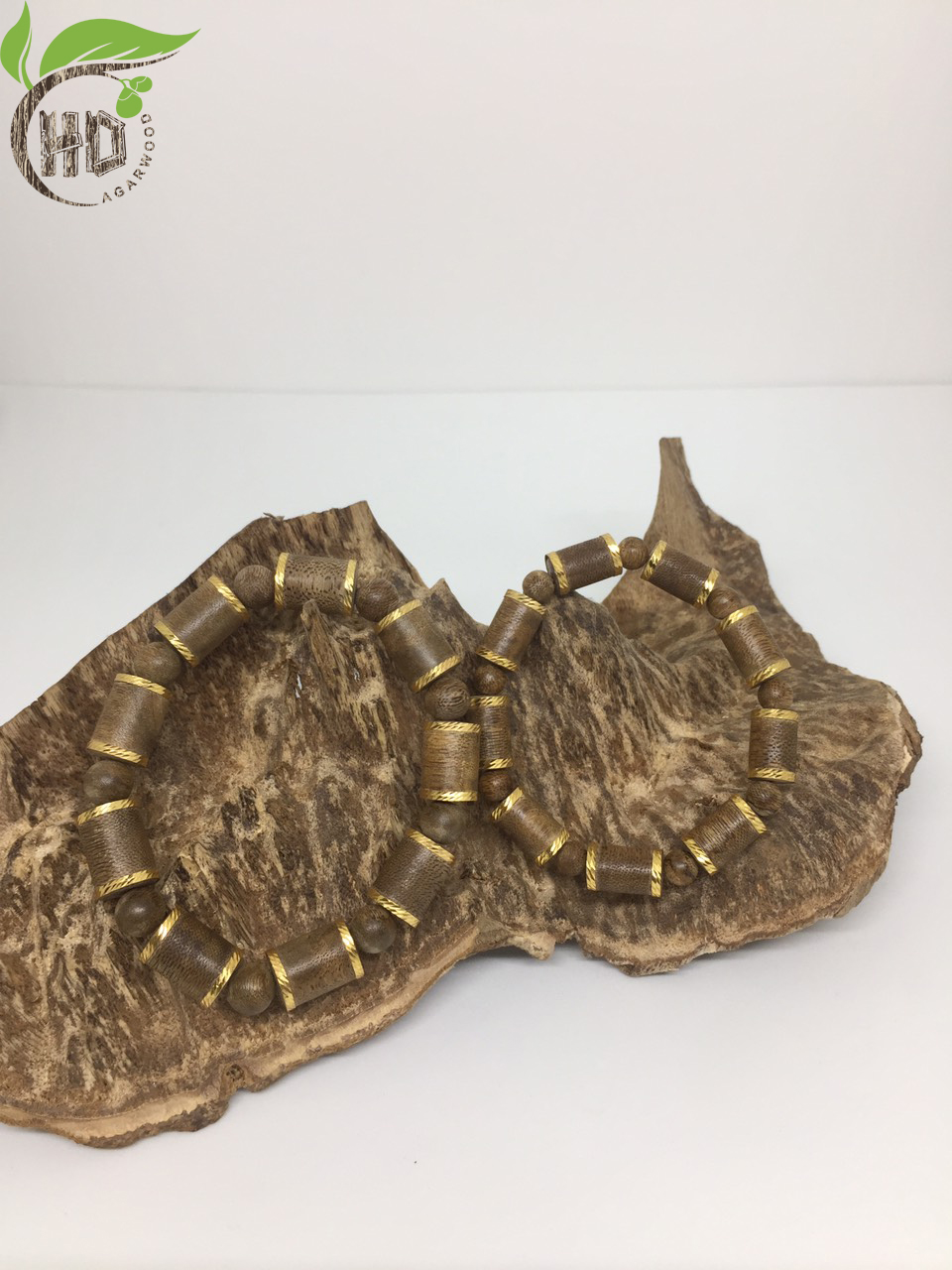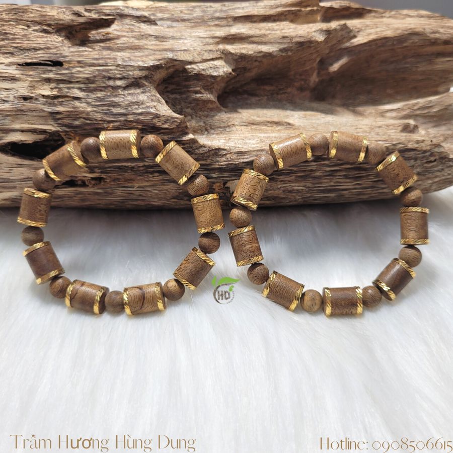 VÒNG TAY TRẦM HƯƠNG TRỤ TRÚC BỌC VÀNG 18K