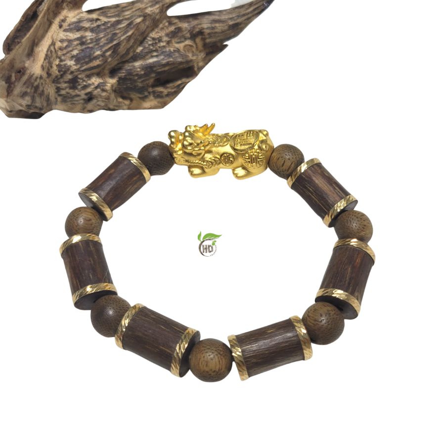 VÒNG TAY NGUYÊN CỘNG TRẦM HƯƠNG TỰ NHIÊN TỲ HƯƠU VÀNG