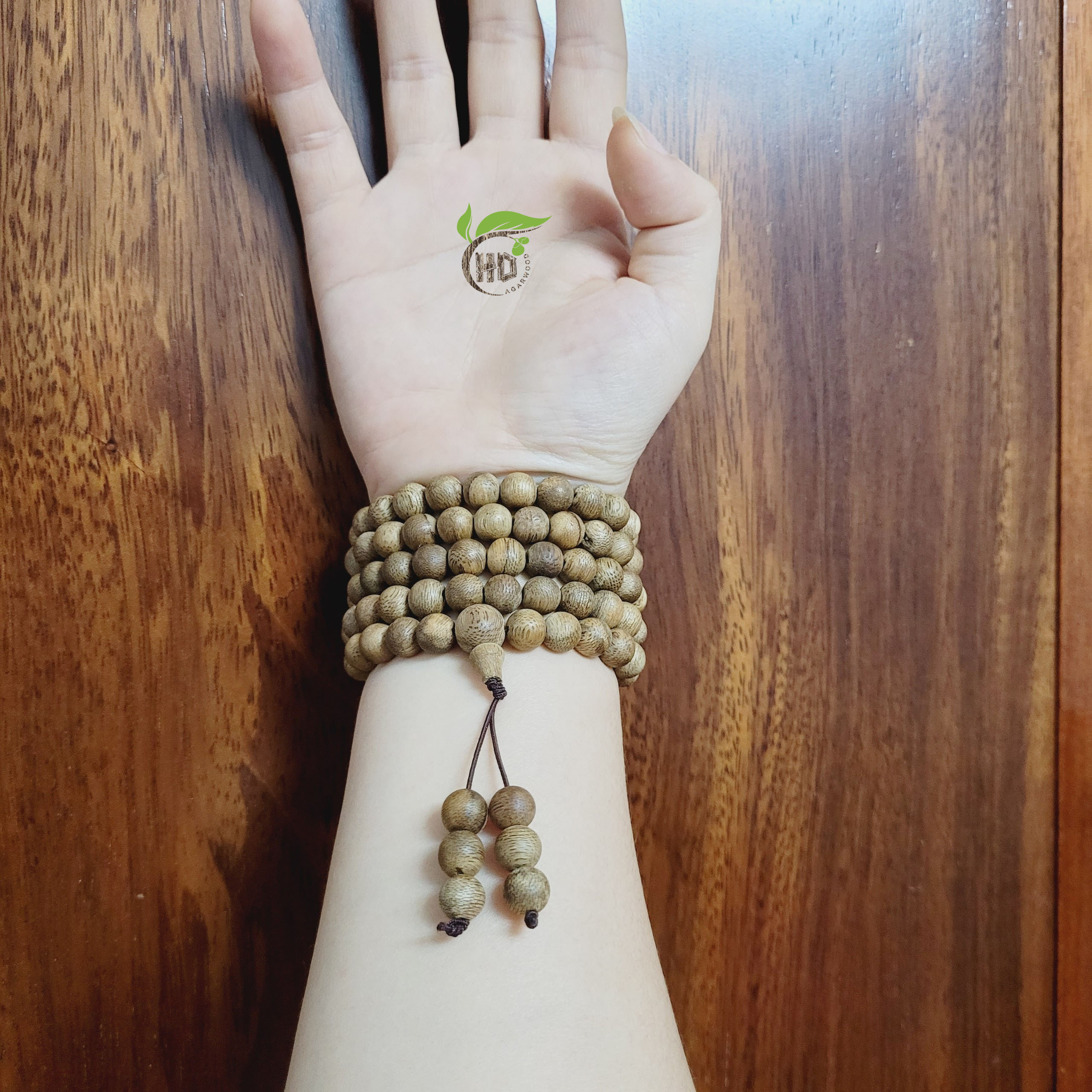 Vòng tay Trầm Hương 108 Hạt Dó Xí vân gỗ rõ nét, mùi thơm đoạn trừ phiền não, cho tâm thanh tịnh và may mắn. Xua tan năng lượng xấu và tiêu cực.