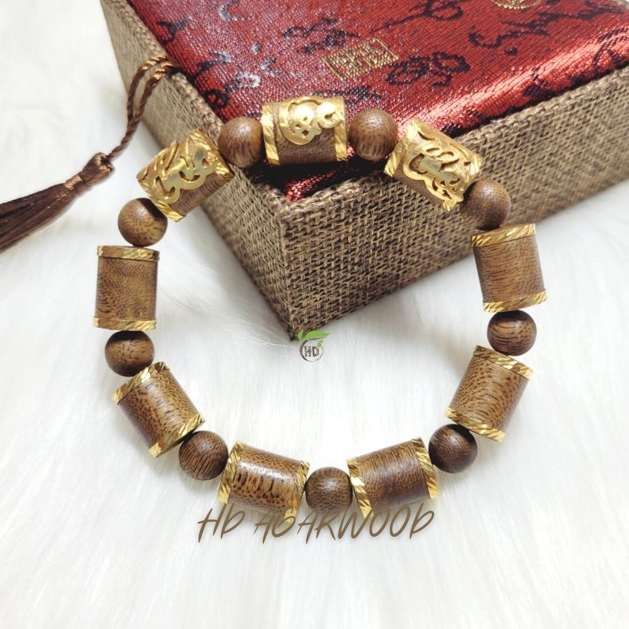 VÒNG TAY TRẦM HƯƠNG BỌC VÀNG CHỮ PHÚC LỘC THỌ
