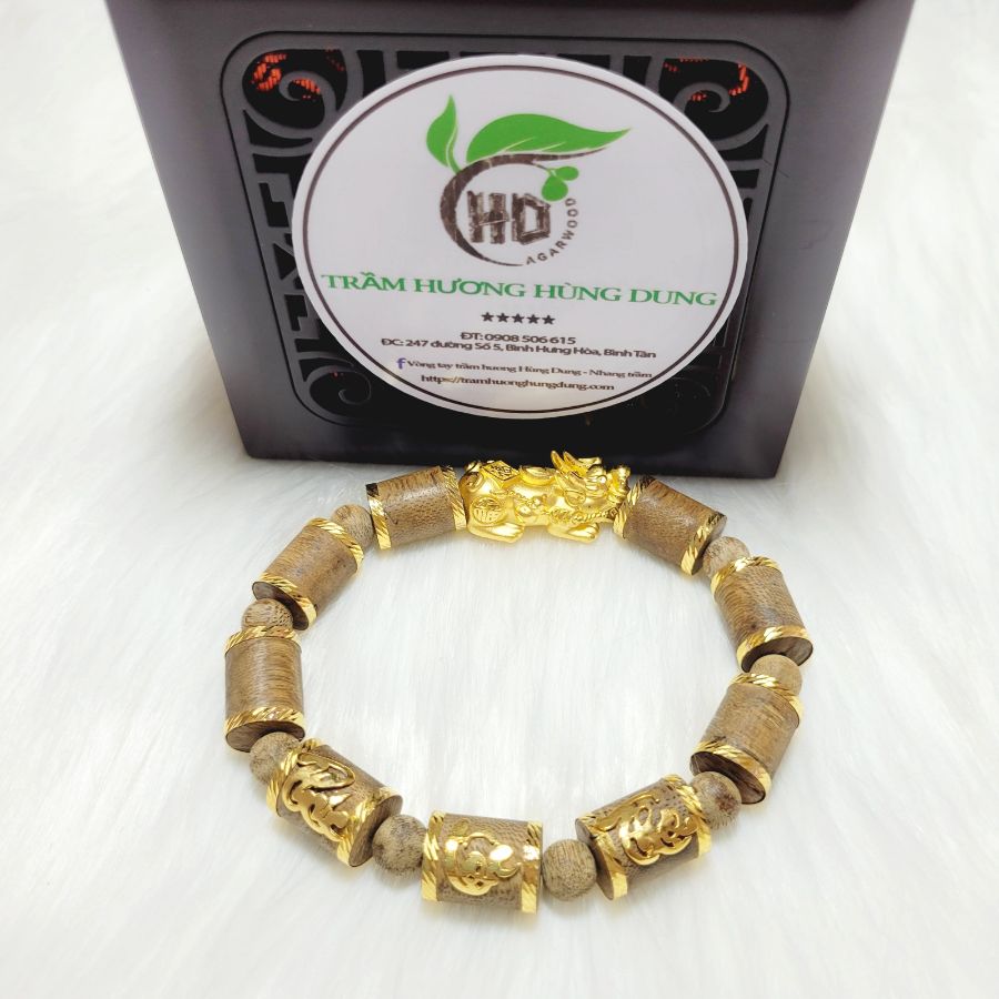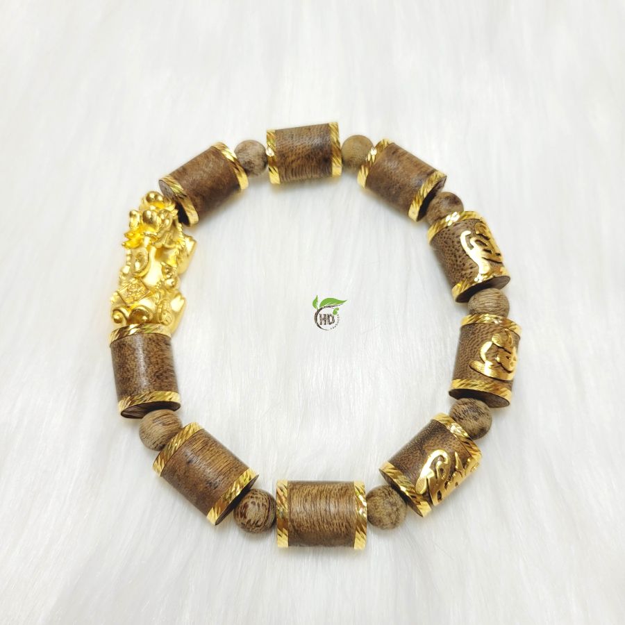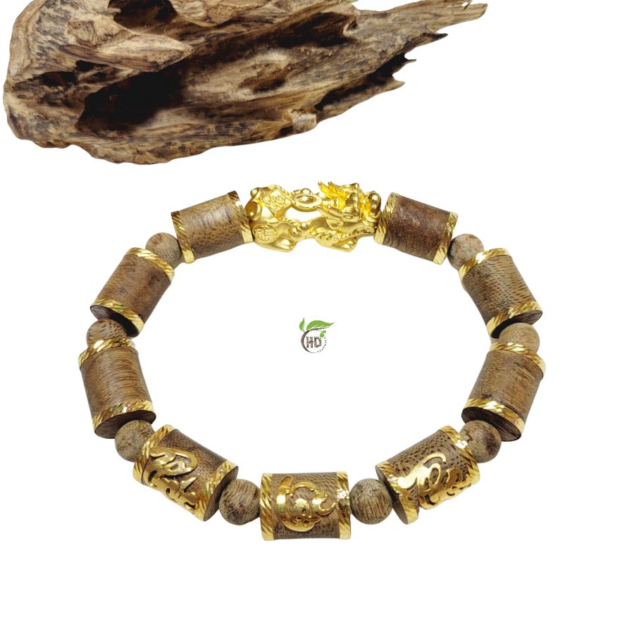 VÒNG TRẦM HƯƠNG BỌC PHÚC LỘC THỌ MIX TỲ HƯƠU VÀNG